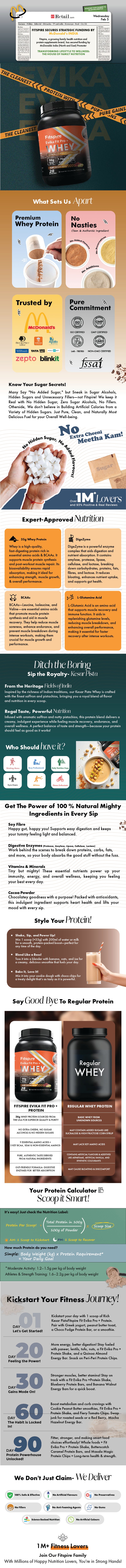 Fitspire Evika Fit Super Pro Whey Protein is a protein supplement designed to support muscle gain and bodybuilding. It provides a convenient way to increase protein intake without relying solely on protein-rich foods, which can be challenging to consume in large amounts while maintaining a balanced diet.