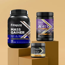 Meet your ultimate protein trio – Fitspire Mass Gainer (Double Chocolate : 1.5 Kg) paired with Fitspire Nitra Whey (1 LBS, Belgium Chocolate) & Creatine monohydrate (100g). Together, they deliver a powerful blend of high-quality whey protein designed to fuel your fitness journey, support recovery, and energize your everyday life.